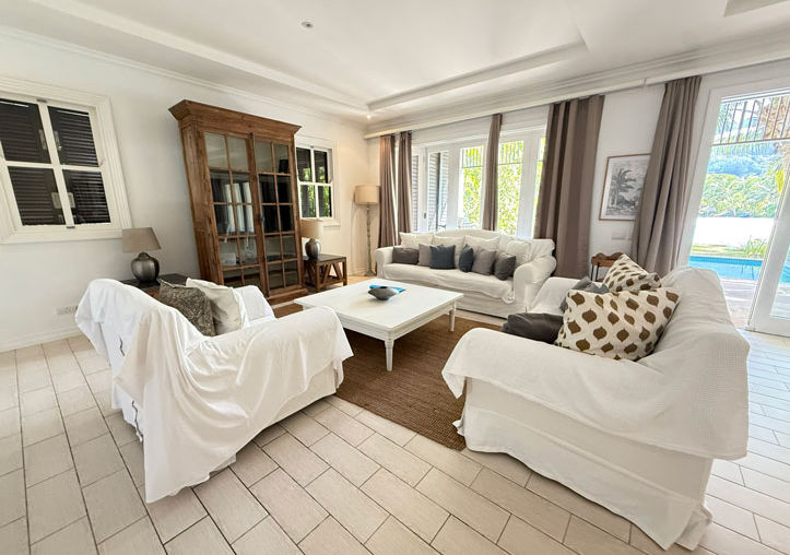 Maison unique en bord de plage sur Eden Island, bénéficiant d’un emplacement rarissime, entre deux plages privées. L’une d’elles est accessible directement depuis le jardin, un privilège généralement réservé aux villas de prestige.